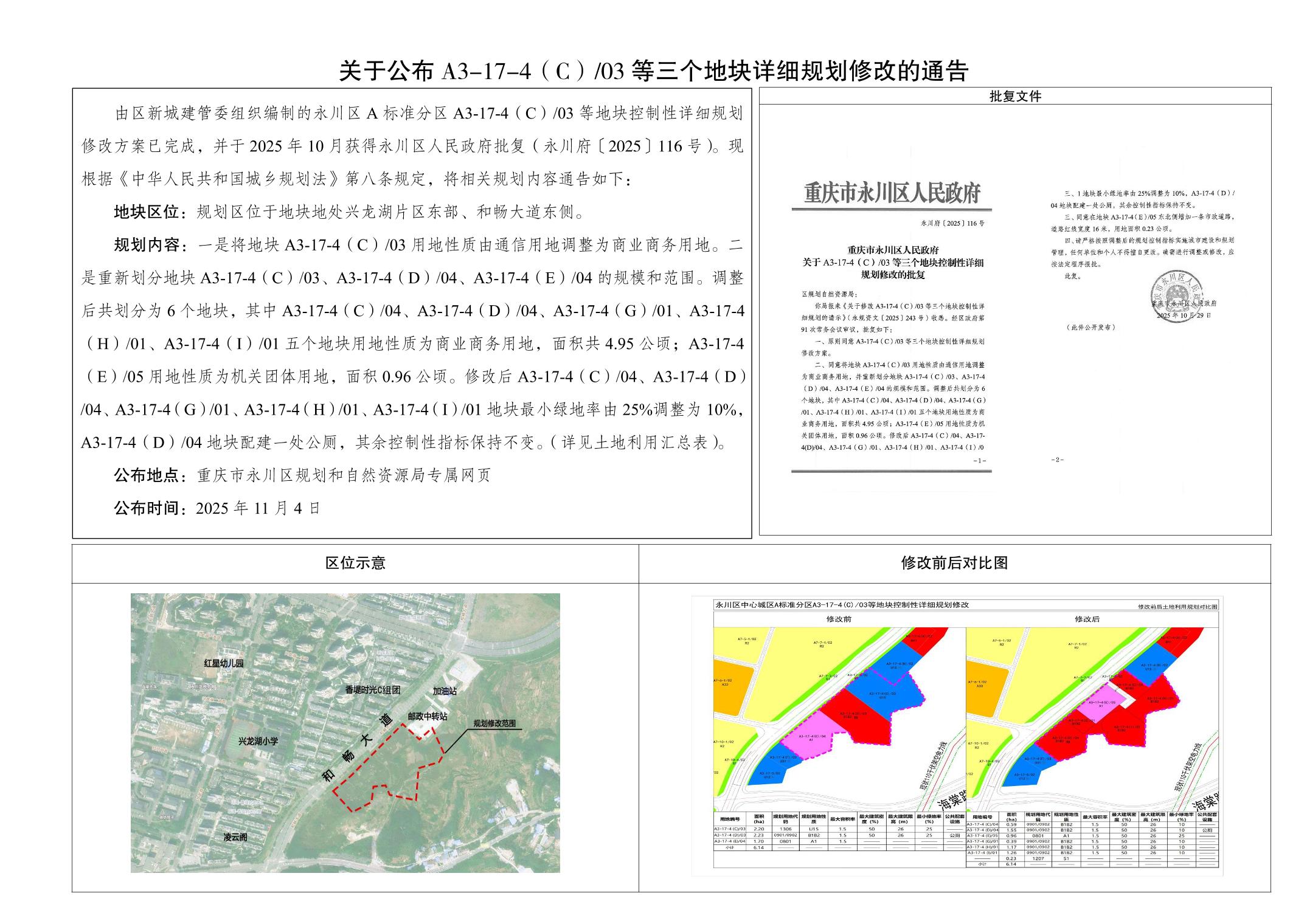 关于公布A3-17-4(C)-03等三个地块控制性详细规划修改的通告