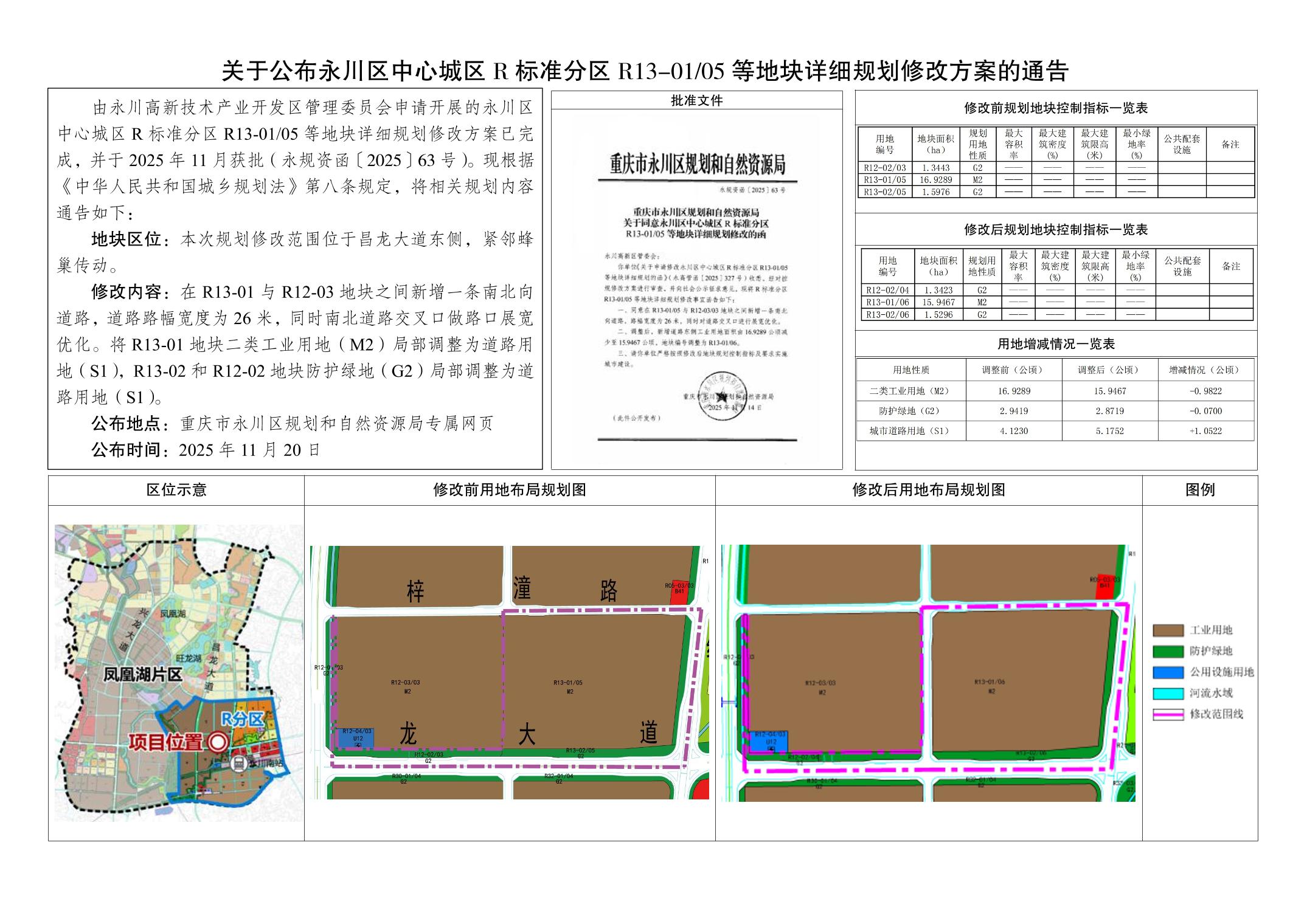 关于公布永川区中心城区R标准分区R13-01/05等地块详细规划修改方案的通告