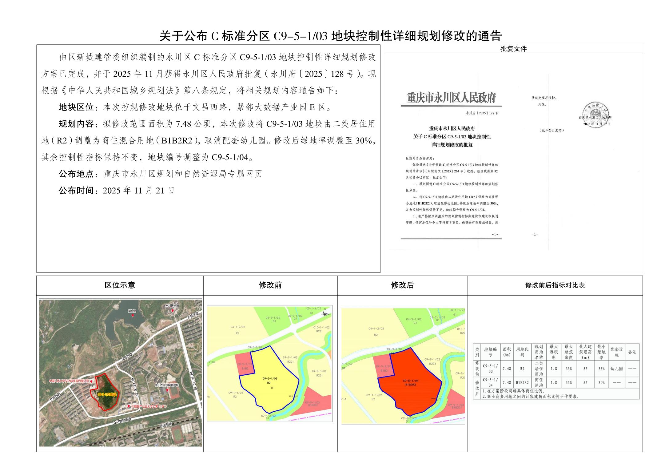 关于公布C标准分区C9-5-1/03地块控制性详细规划修改的通告